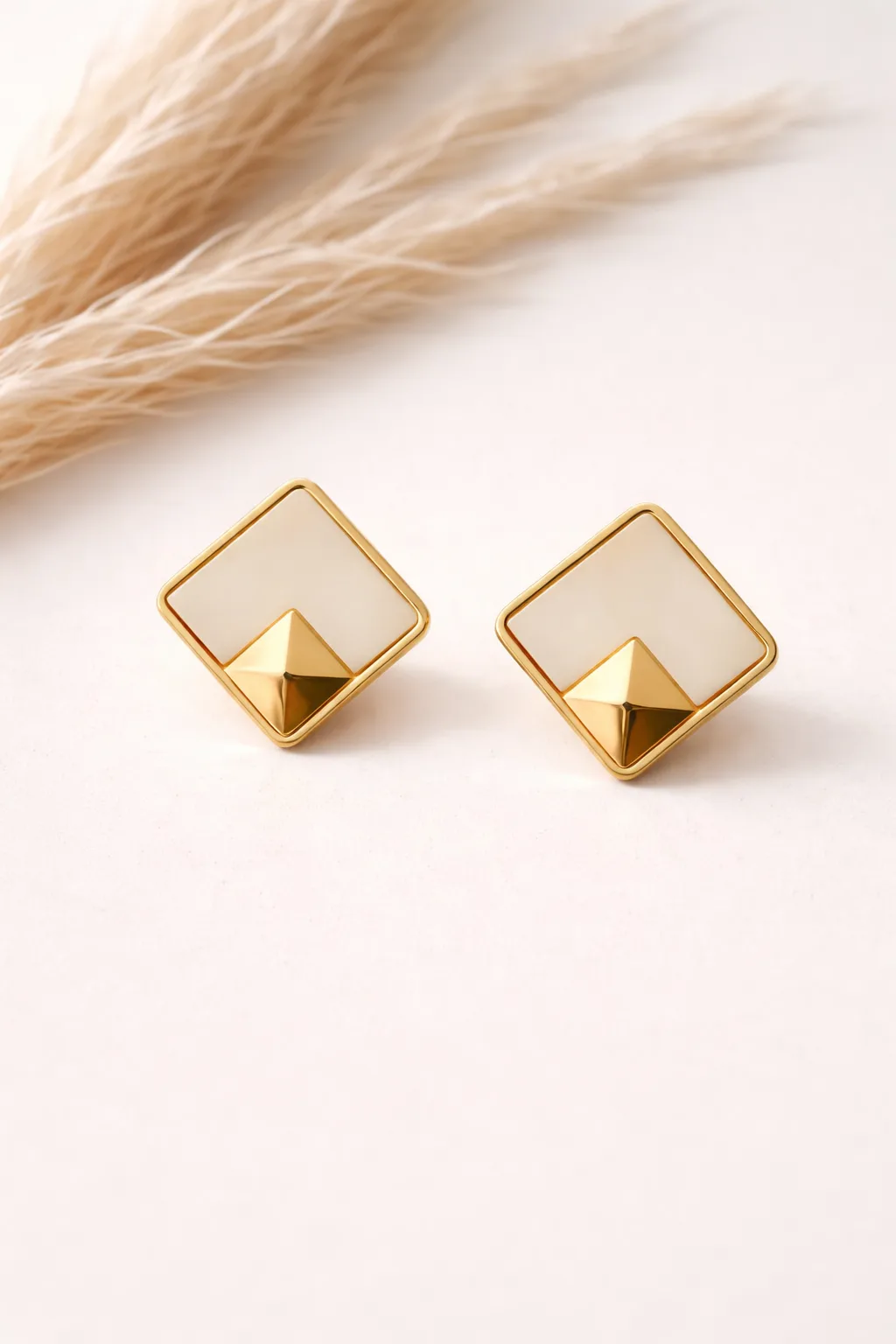 Clean lines, modern geometry, and understated elegance come together in the Marble Square Studs. Designed with a contemporary square frame and a sculpted pyramid center, these earrings reflect a perfect balance of structure and style. The open square silhouette creates a light, minimal look, while the polished central form adds depth and dimension. Finished in a warm rose-gold tone, the design offers a subtle shine that enhances its modern aesthetic without being overpowering.