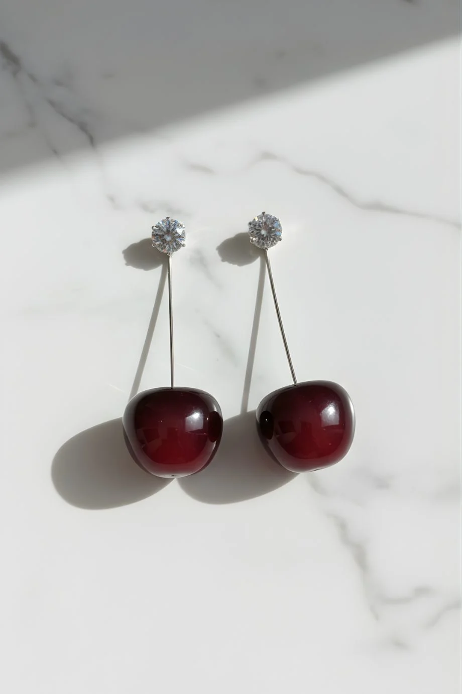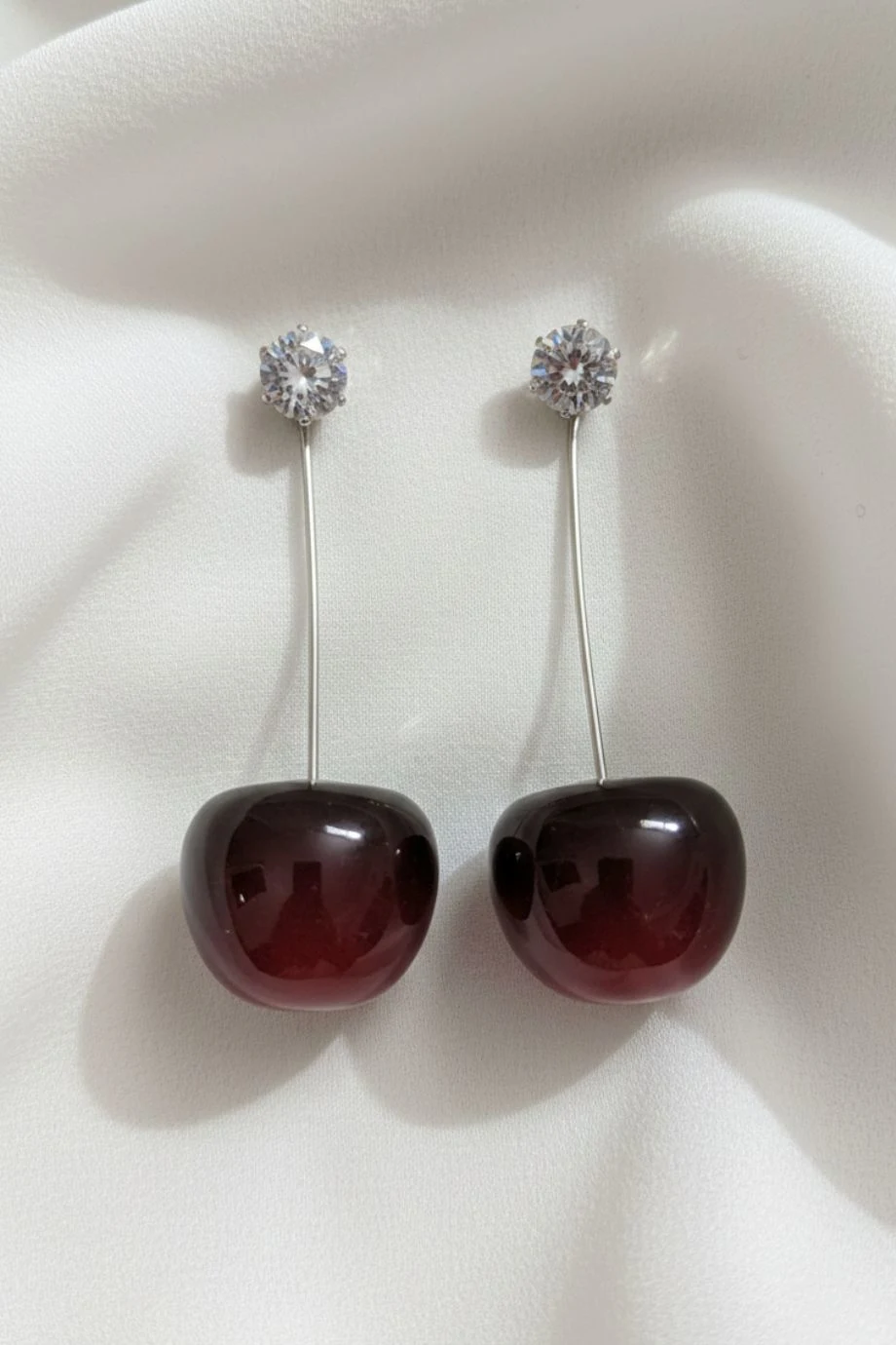 Category:Earrings Tags:Casual, Cherry Drop Earrings, Diamond, Drop Earrings, Modern Jewelry, Party Wear Earrings, Silver, Trendy Earrings Brand: BelleFaux