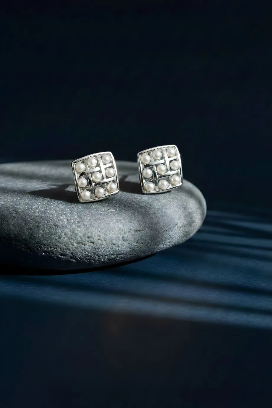 Intersection Pearl Studs Earrings bring together modern structure and classic beauty. Designed with a clean square silhouette, each stud features a delicate grid pattern where luminous pearls sit gracefully at every intersection. The symmetrical layout creates a balanced, contemporary aesthetic while preserving the timeless charm of pearls.