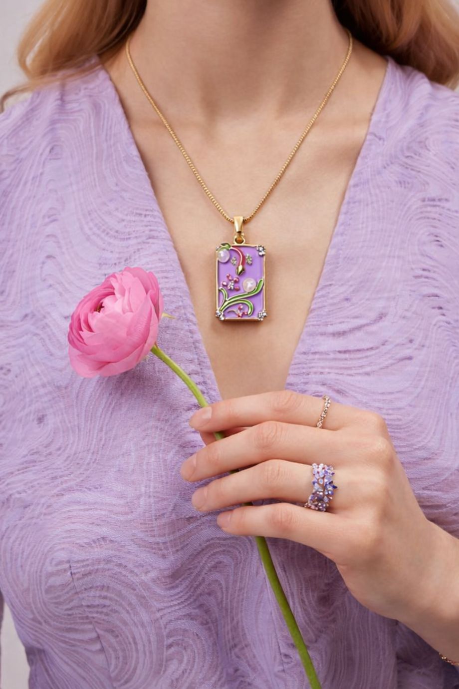 • Lavender Enamel Floral Vine Pendant