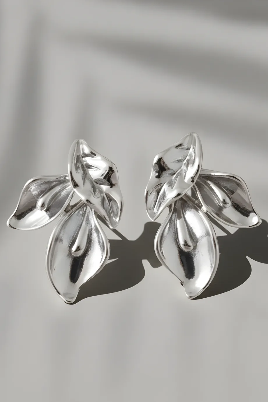The Silver Ginkyo Stud Earrings are a masterclass in organic design, inspired by the graceful, fan-shaped foliage of the ancient Ginkgo tree. These sculptural studs feature a trio of overlapping leaves, expertly crafted with a high-polish silver finish that mimics the fluid motion of falling leaves. The intricate detailing on the leaf surfaces provides a rich, tactile depth that catches and reflects light from every angle.